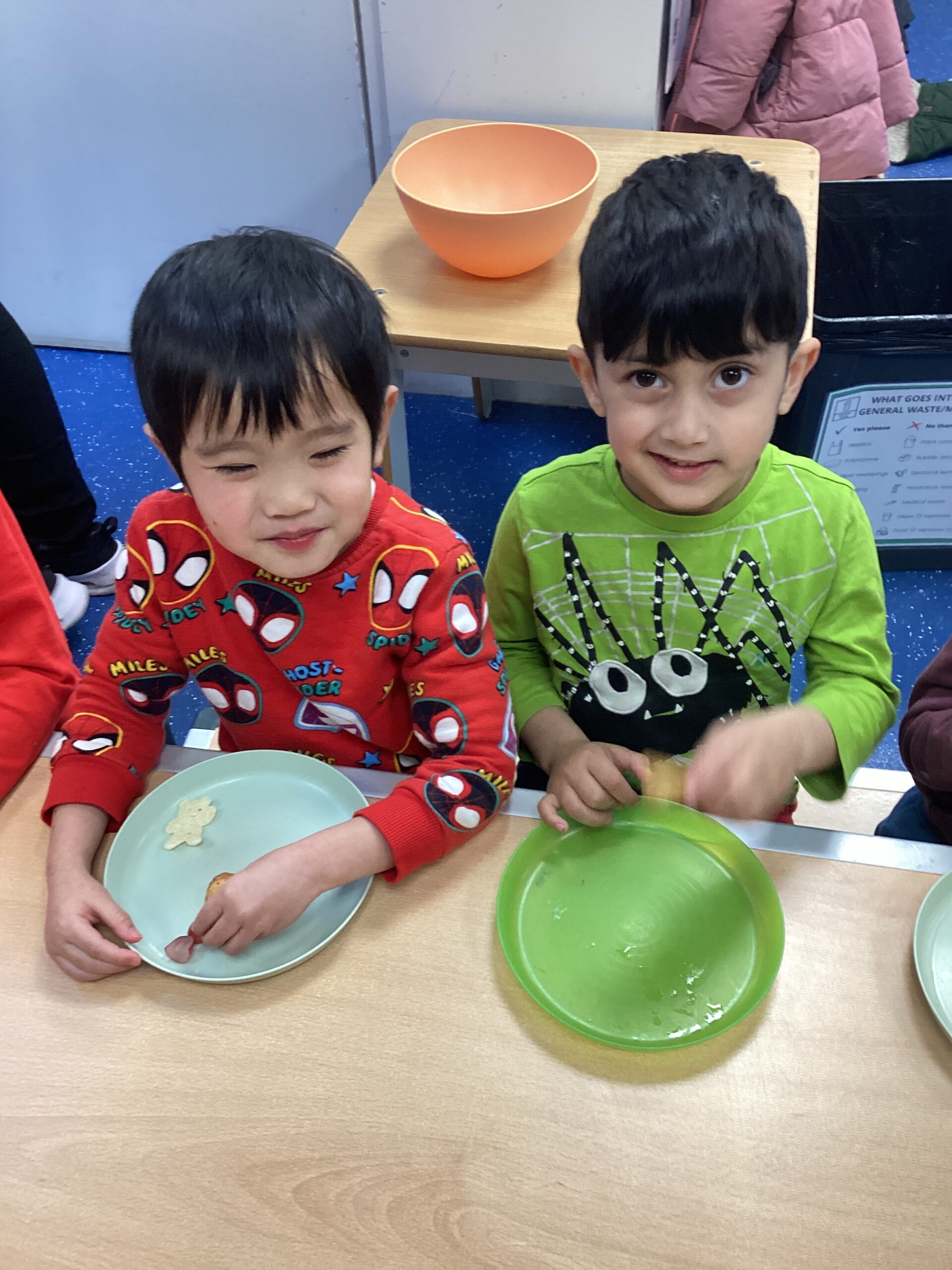 This week, we also did a wonderful job at baking some jam tarts to share with our families at our Nursery Nativity performance. Thank you to our families who enjoyed one of the treats and gave a kind donation towards our school community. It was wonderful to have so many families join us for our performance – we are looking forward to doing it all again next Tuesday!