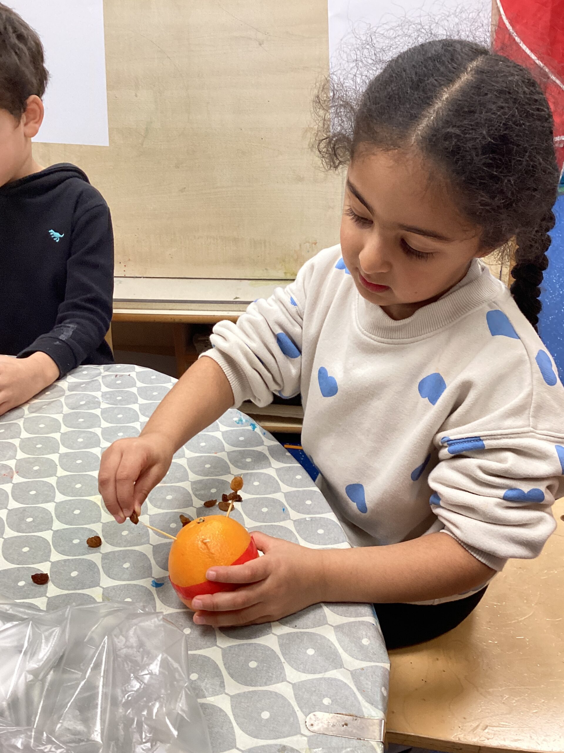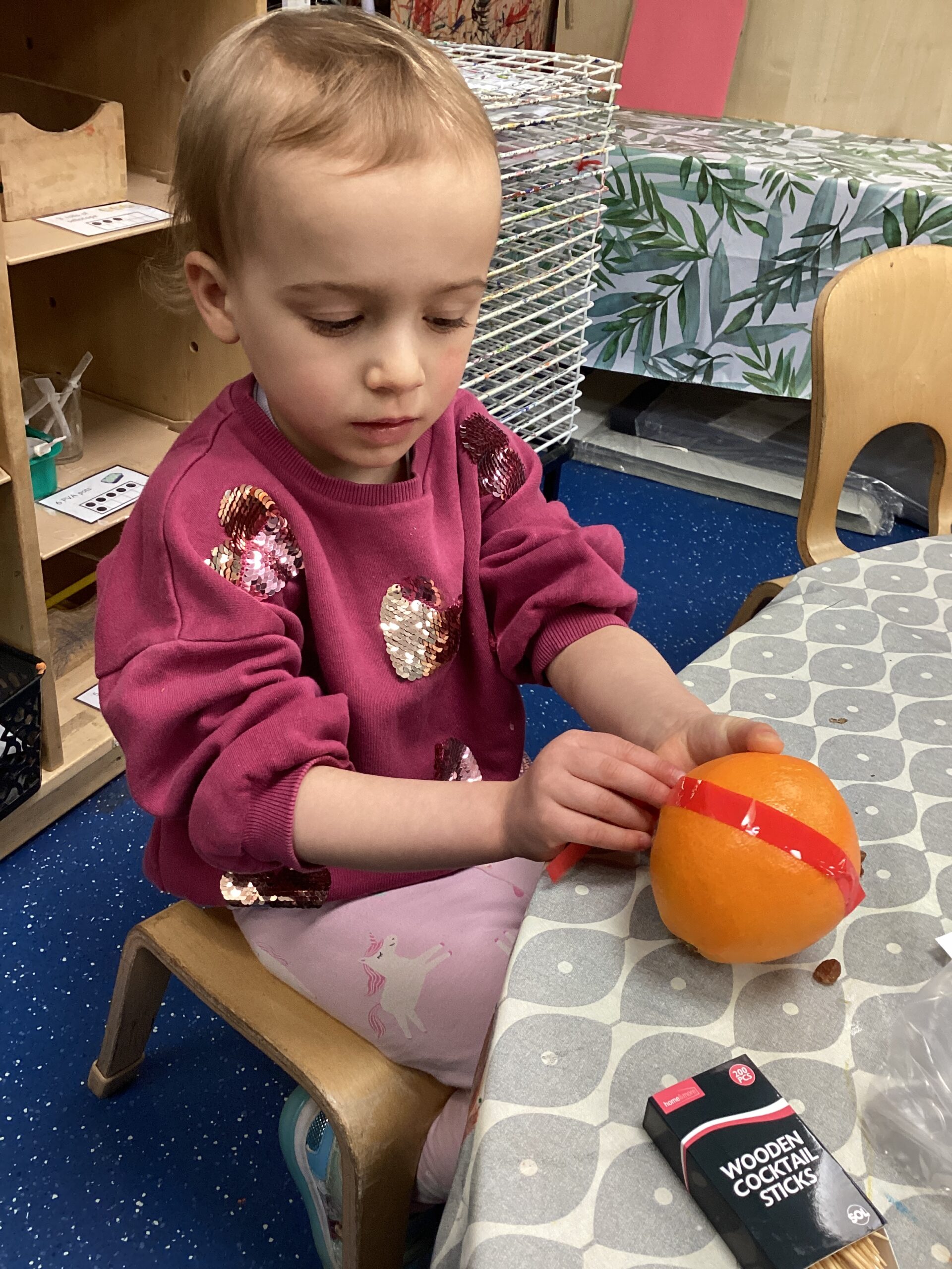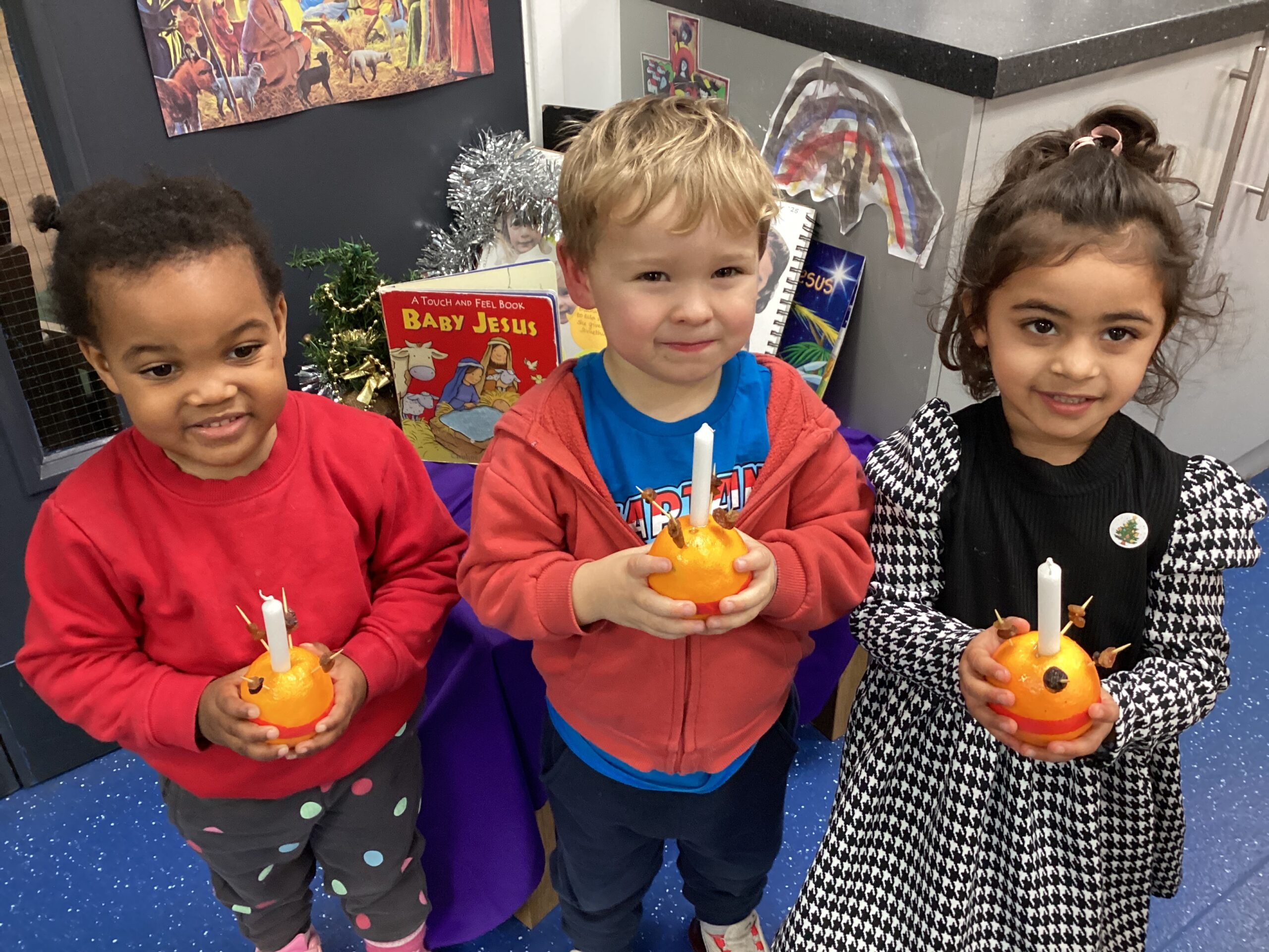 We enjoyed creating christingles this week at Nursery, learning about what they represent to many people and what the different parts of the christingle can symbolise. We concentrated carefully as we followed each instruction, showing pride in the end result! Some of us joined the rest of our school for the Christingle Service on the last day of term.