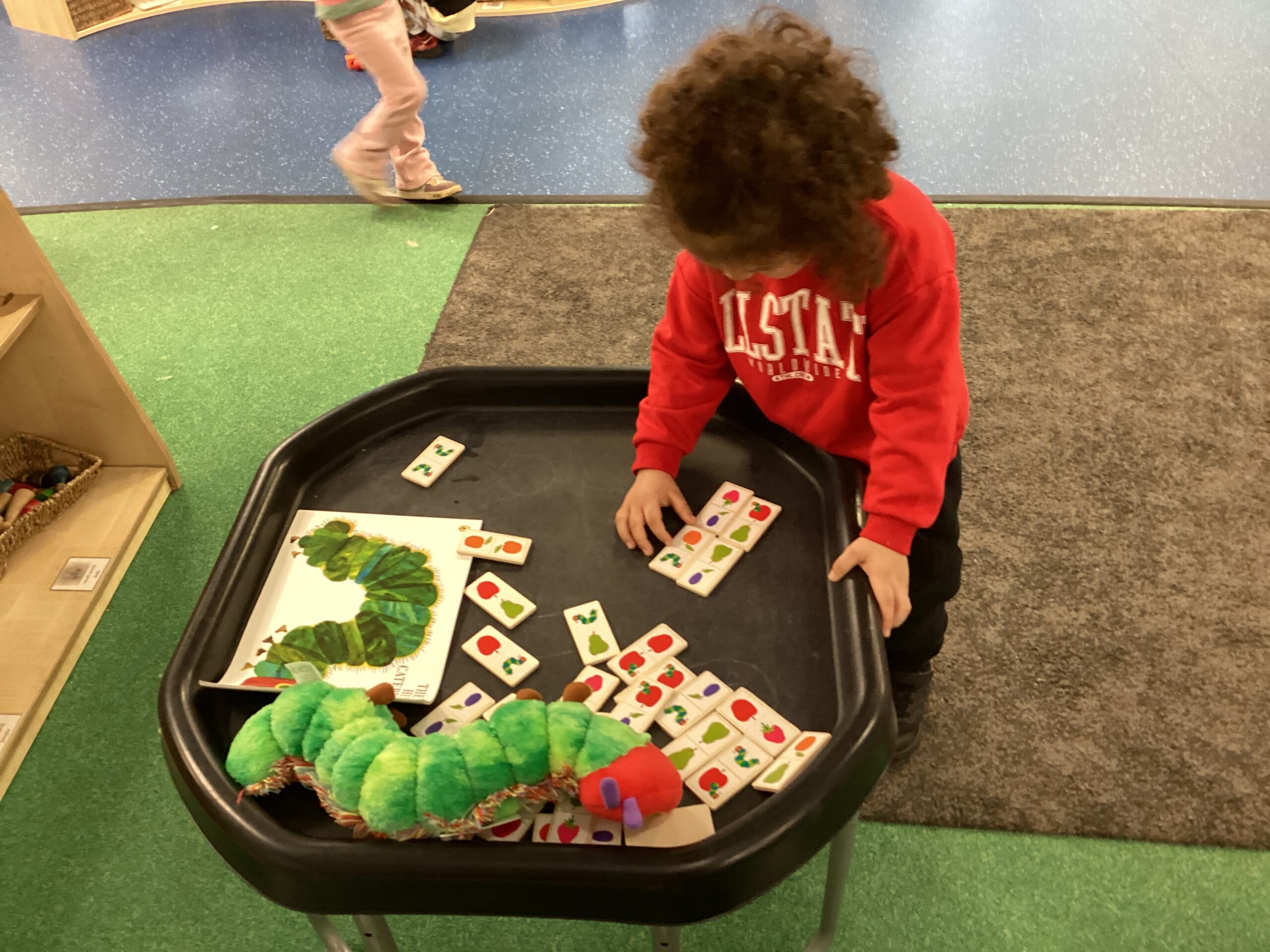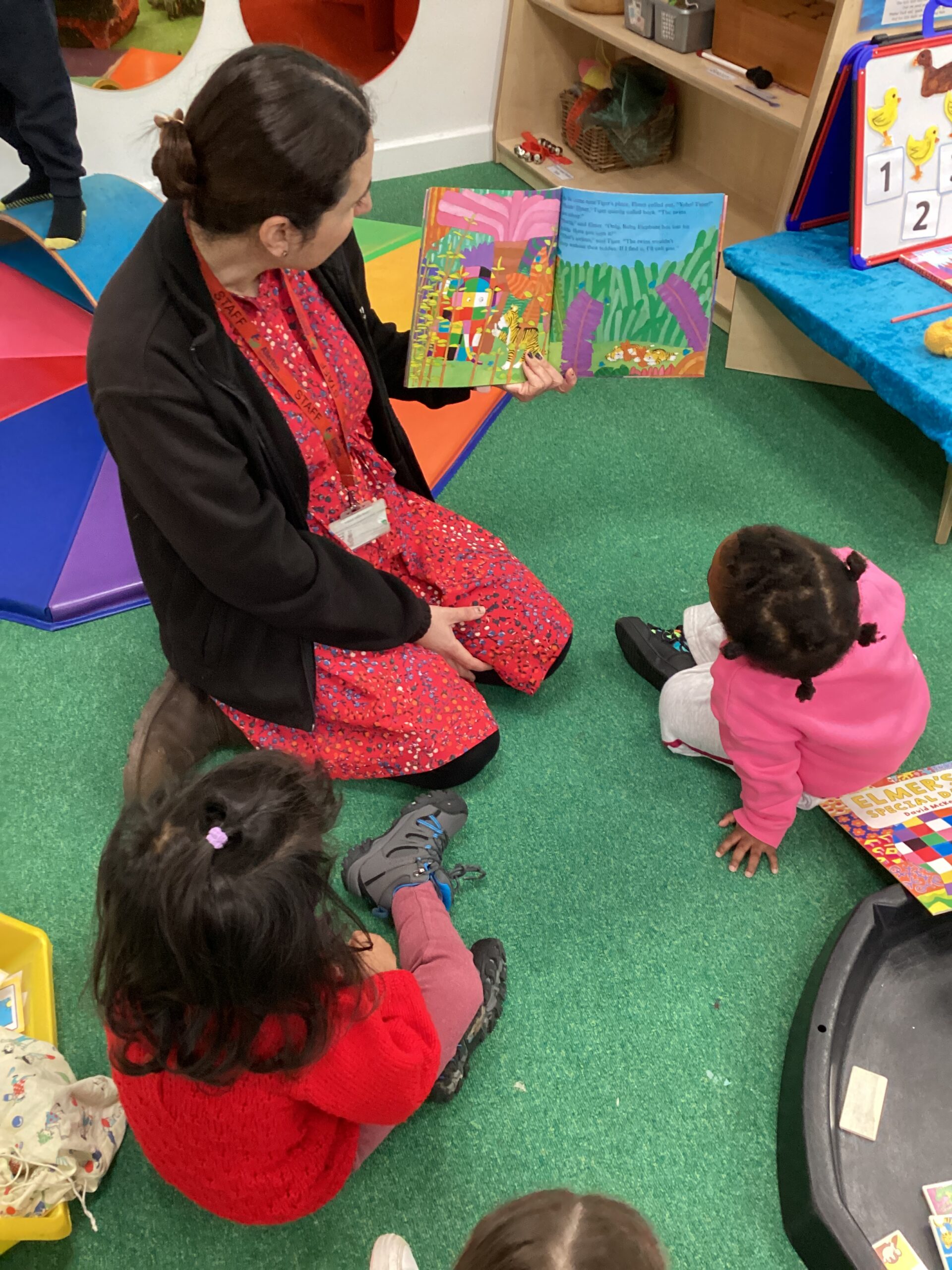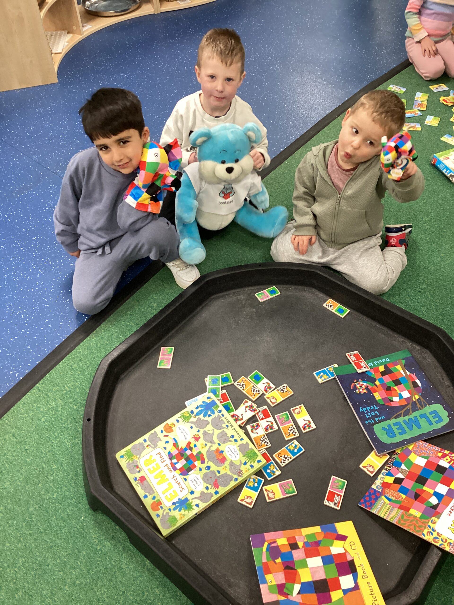 At our first Reading Cafe, we enjoyed looking at The Very Hungry Caterpillar and Elmer stories. We enjoyed playing dominoes, learning from information books, listening to our adults sharing them and retelling the tales using puppets and toys. At the end of our session, we sat together and listened to Elmer’s Walk.