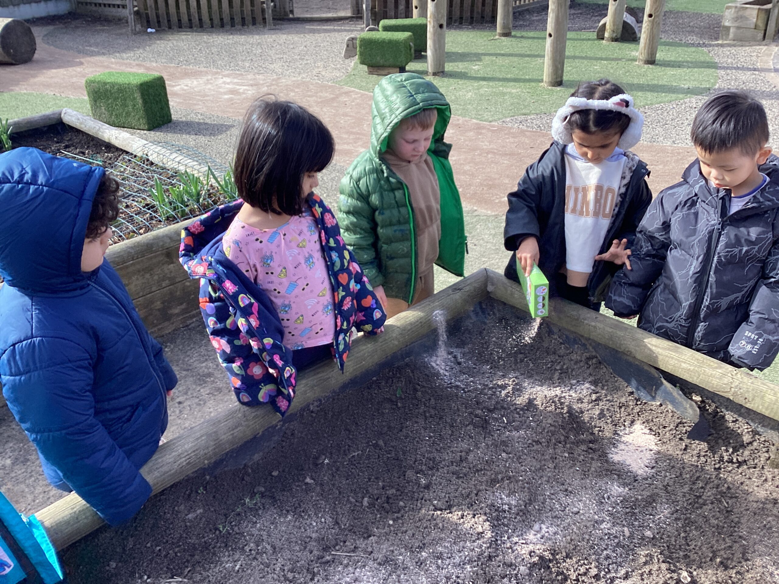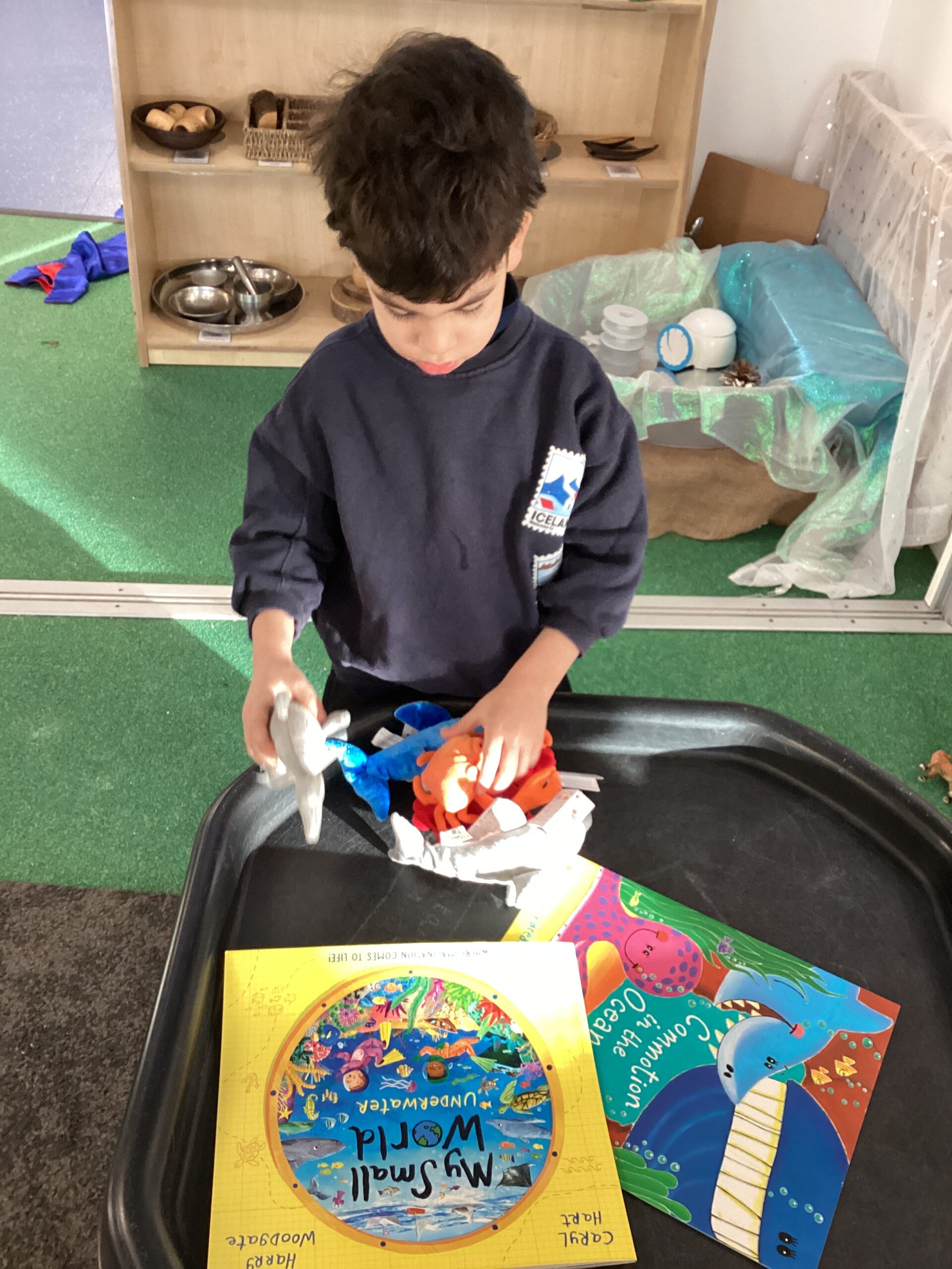 At the start of the week, our interest was captured when we noticed ice in our water tray! We looked closely at the blocks of ice and noticed polar animals hiding inside. “They are stuck”, said Sunny, “How do we get them?”. We shared our thinking with one another as we enjoyed feeling the cold ice on our hands. We noticed that some of the ice melted into water as we continued to touch it. “It’s melting!”, shouted Finley with great excitement. We thought about why this might be and decided that we are much warmer than the ice itself. We continued to share our thoughts and ideas, until we decided to use warm water to melt it. We tested out our idea and all got to work, concentrating carefully as we used containers, pipettes and syringes to add warm water to the ice. We maintained our focus on what we were doing and watched as more and more ice melted away and the water tray began to fill with water. We didn’t stop until we reached our goal and the polar animals were free to play with in the water. Together, we celebrated our achievement! Fantastic teamwork and collaboration!
