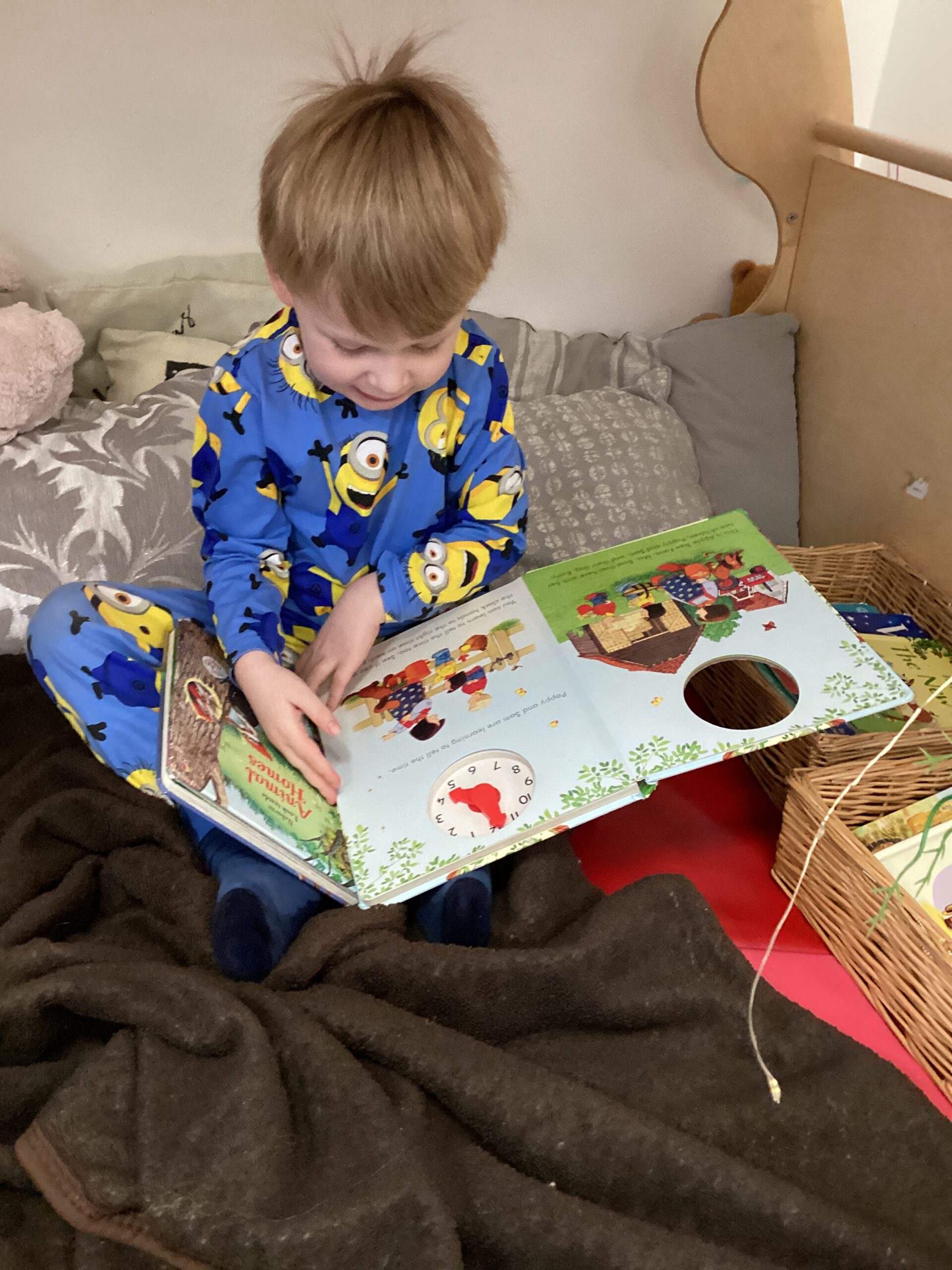 Opening the next door on our advent calendar has become a highlight of our Nursery day. We have had lots of fun predicting what the story behind the door might be about before finding out for ourselves. Some of us have been very excited to find familiar stories in our advent calendar which we then shared together. We have all enjoyed listening to the stories being read by our Nursery adults.