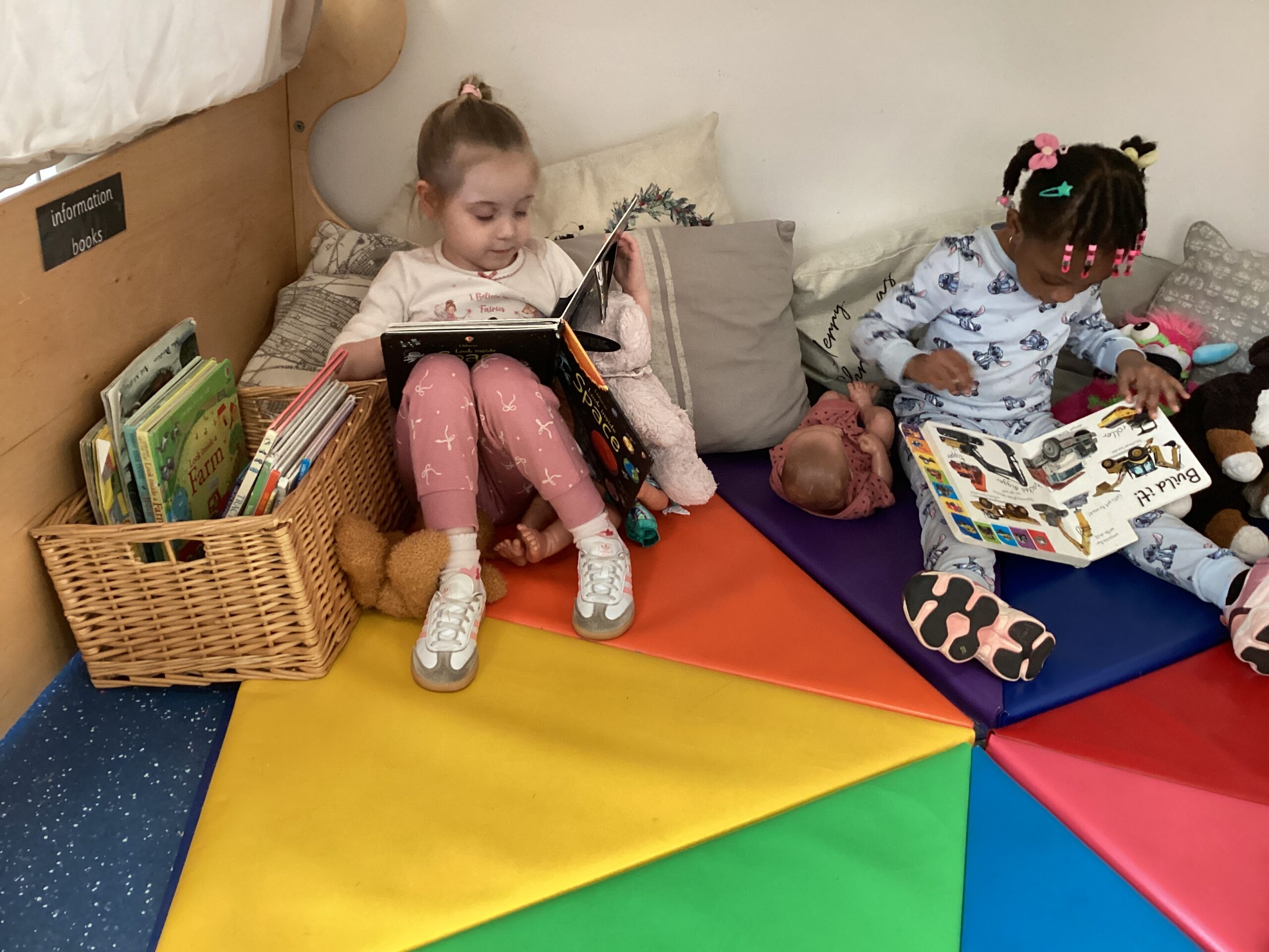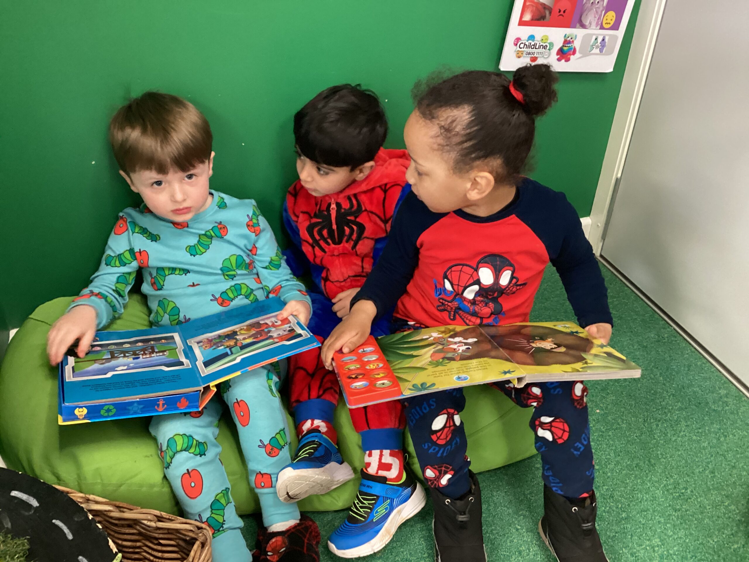 Every Wednesday morning, we participate in our Nursery Reading Cafe! We enjoy sharing stories, looking at information books and having a go at some story-themed activities with our friends, key workers and grown-ups who are also invited to join us.