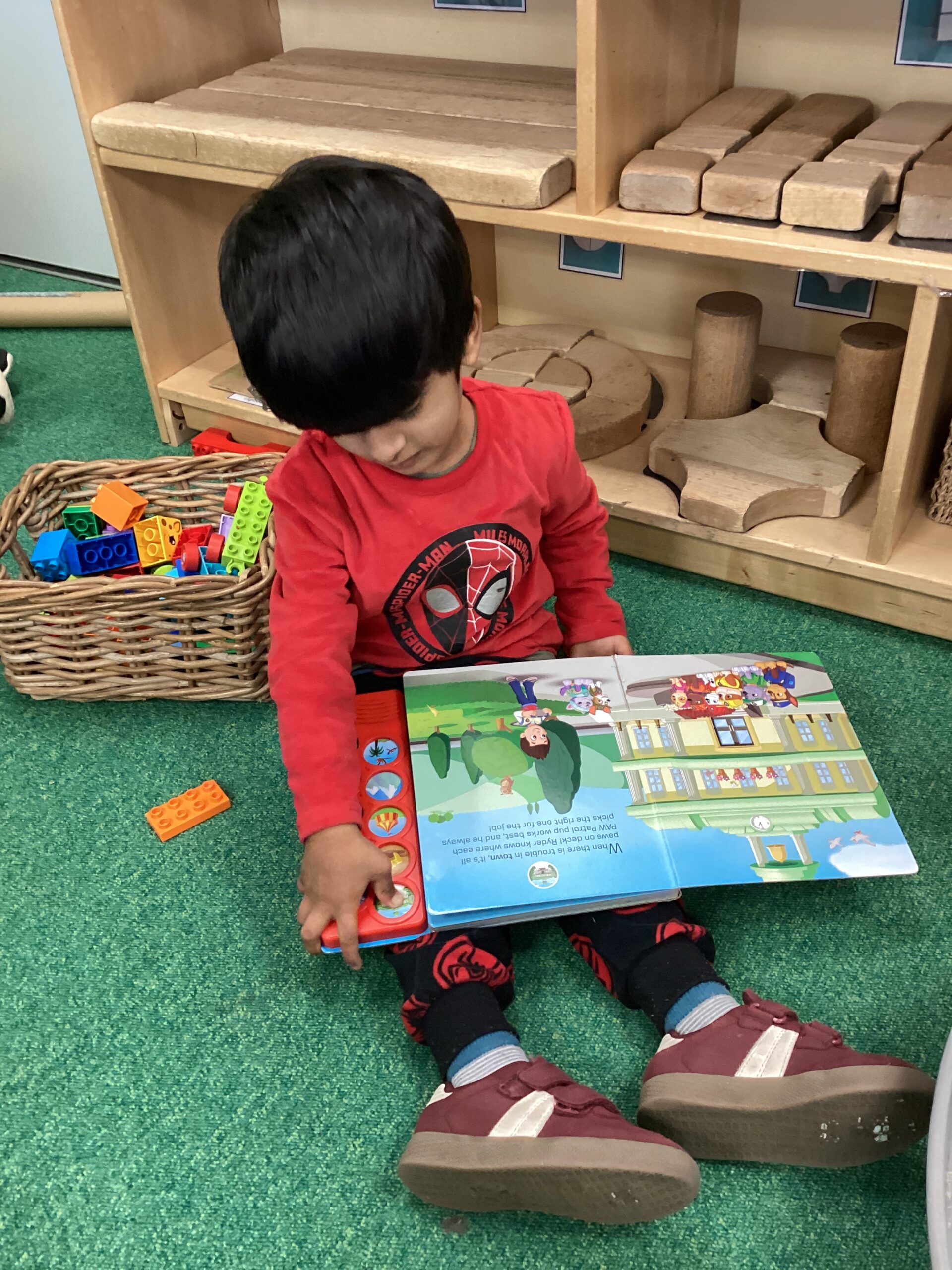 Some of us chose a book to borrow with our library card and take back to Nursery. Toby had the special job of giving Maddie our library card so that we could check them out! We learned how to scan our books so that the Library knows that we have borrowed them. We were very excited to take them back and share them with our friends at school!