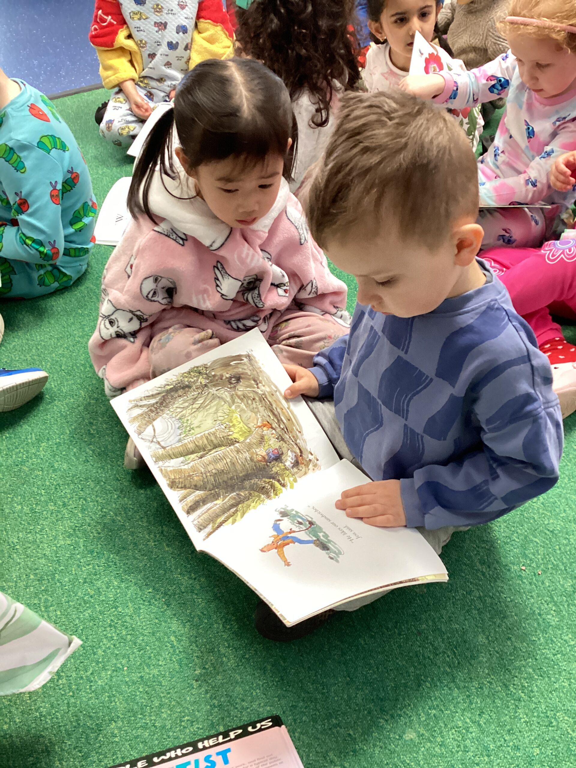 It was then time to explore all of the beautiful books on offer to us! Some of us knew exactly the type of book we were looking for and others were happy to explore and find a book that caught our eye! We enjoyed listening to our grown-ups as they read to us and together we talked about the books we shared. It was very quiet and peaceful as we all got stuck into our wonderful stories with our special people! We handled our books carefully and did a wonderful job at putting them back in the correct places at the end of our story session!
