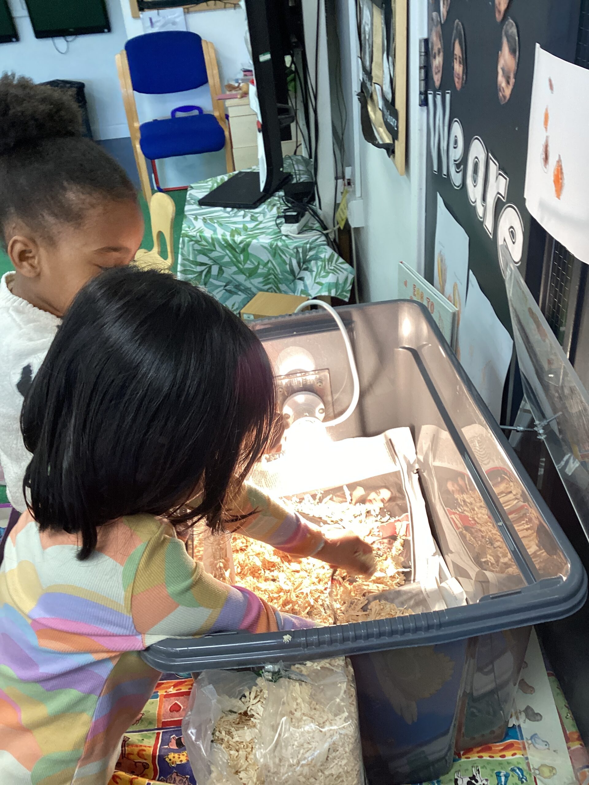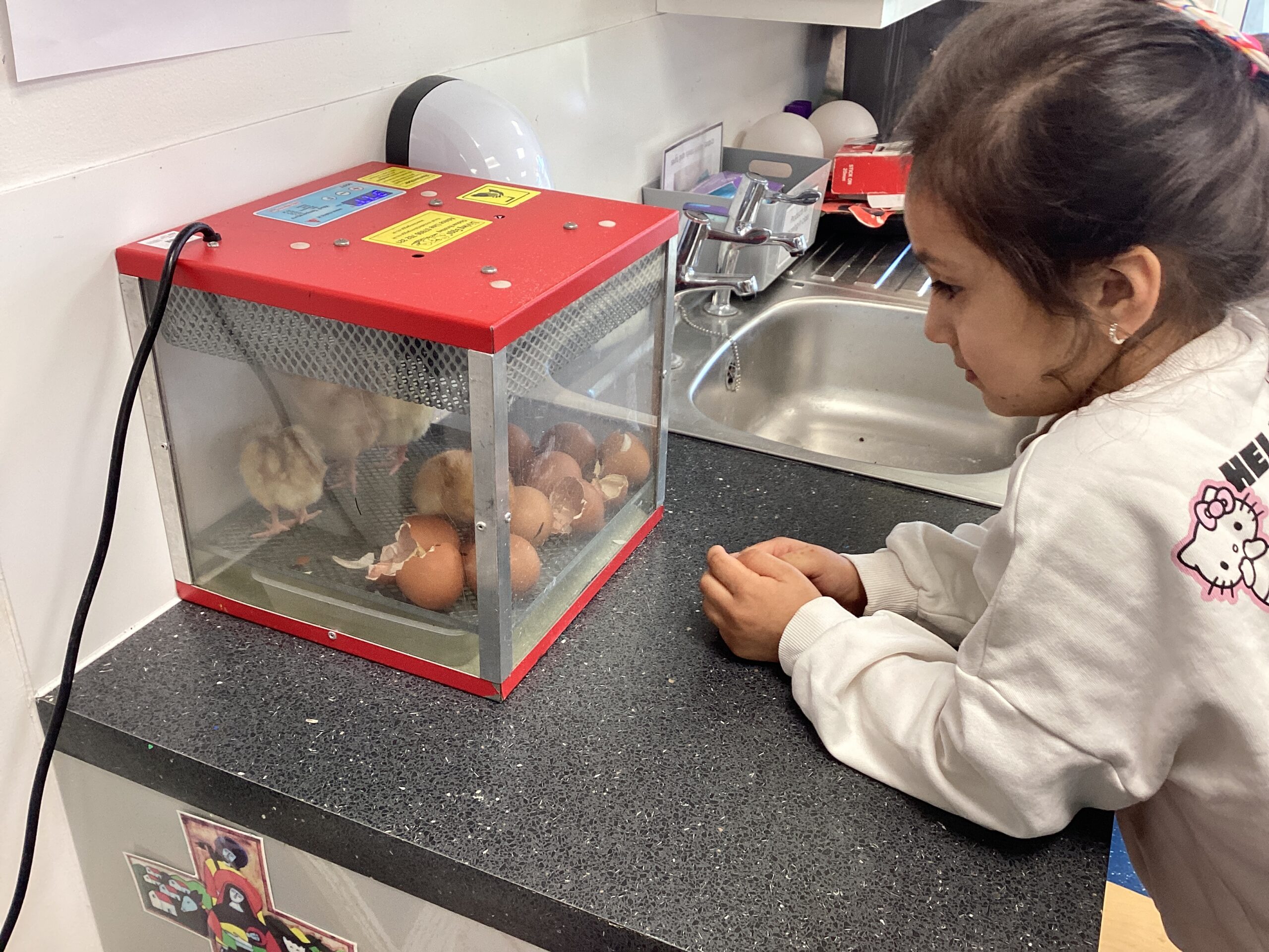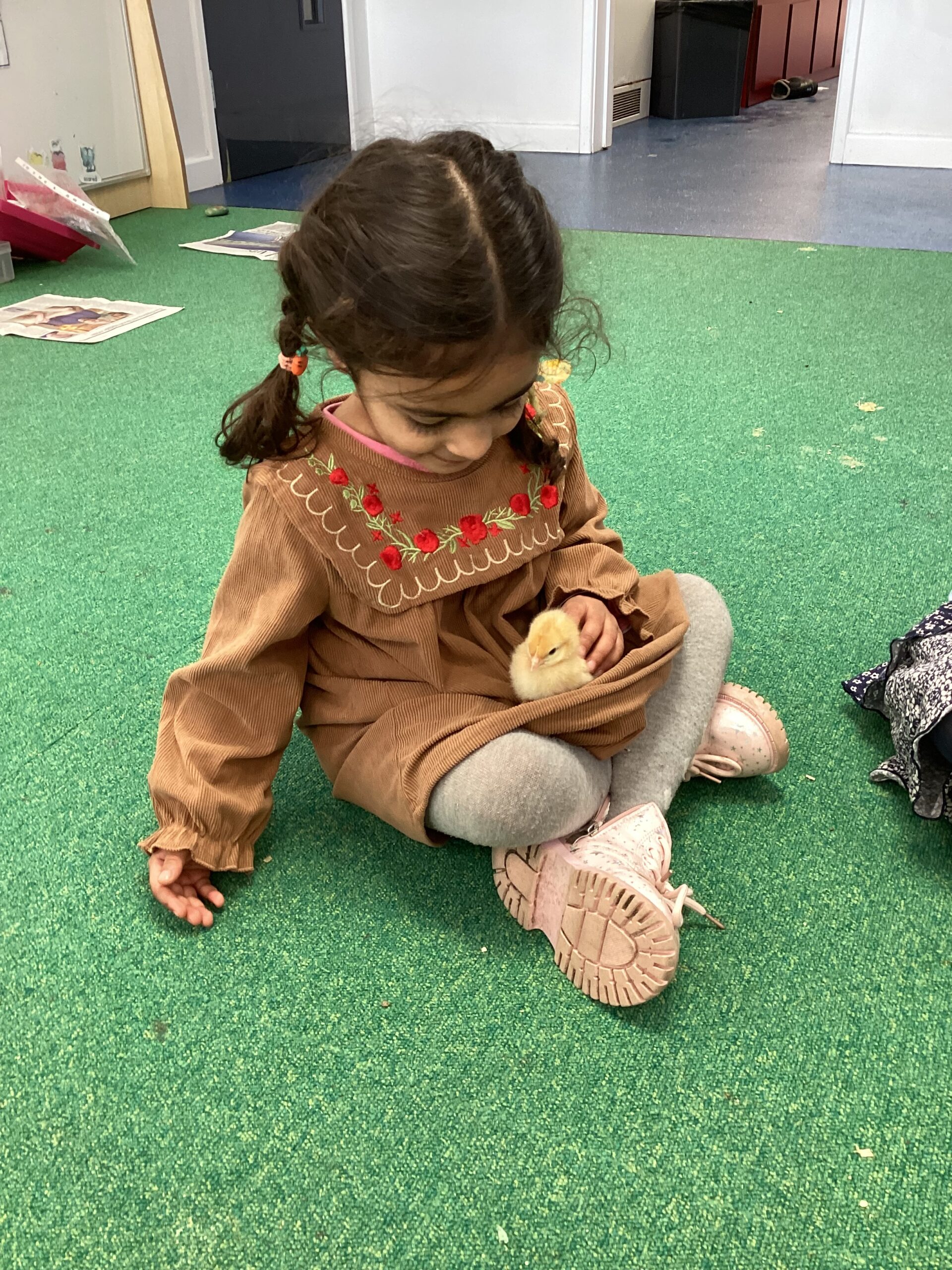We all enjoyed a cuddle with our growing chicks this week! We handled them carefully and stroked their soft feathers gently. This awe and wonder moment has definitely been a highlight of our half-term and we all loved watching our eggs hatch into ten beautiful chicks!