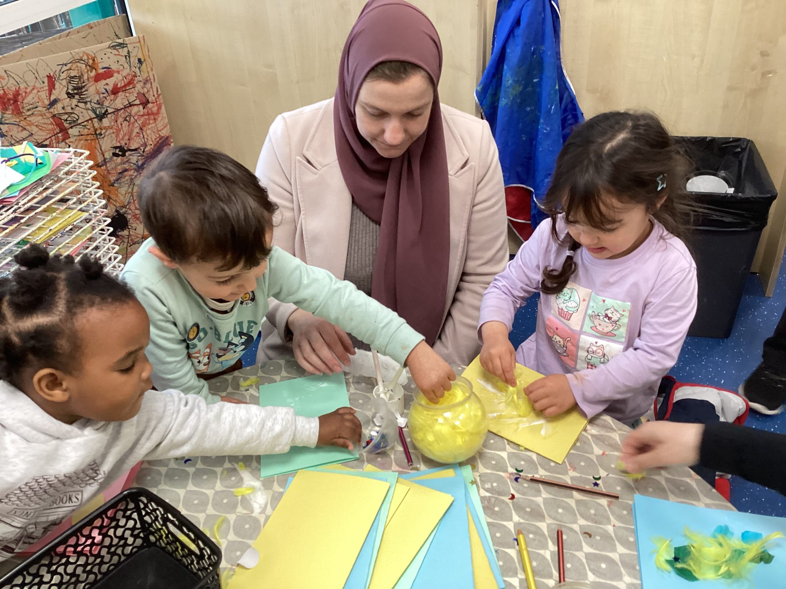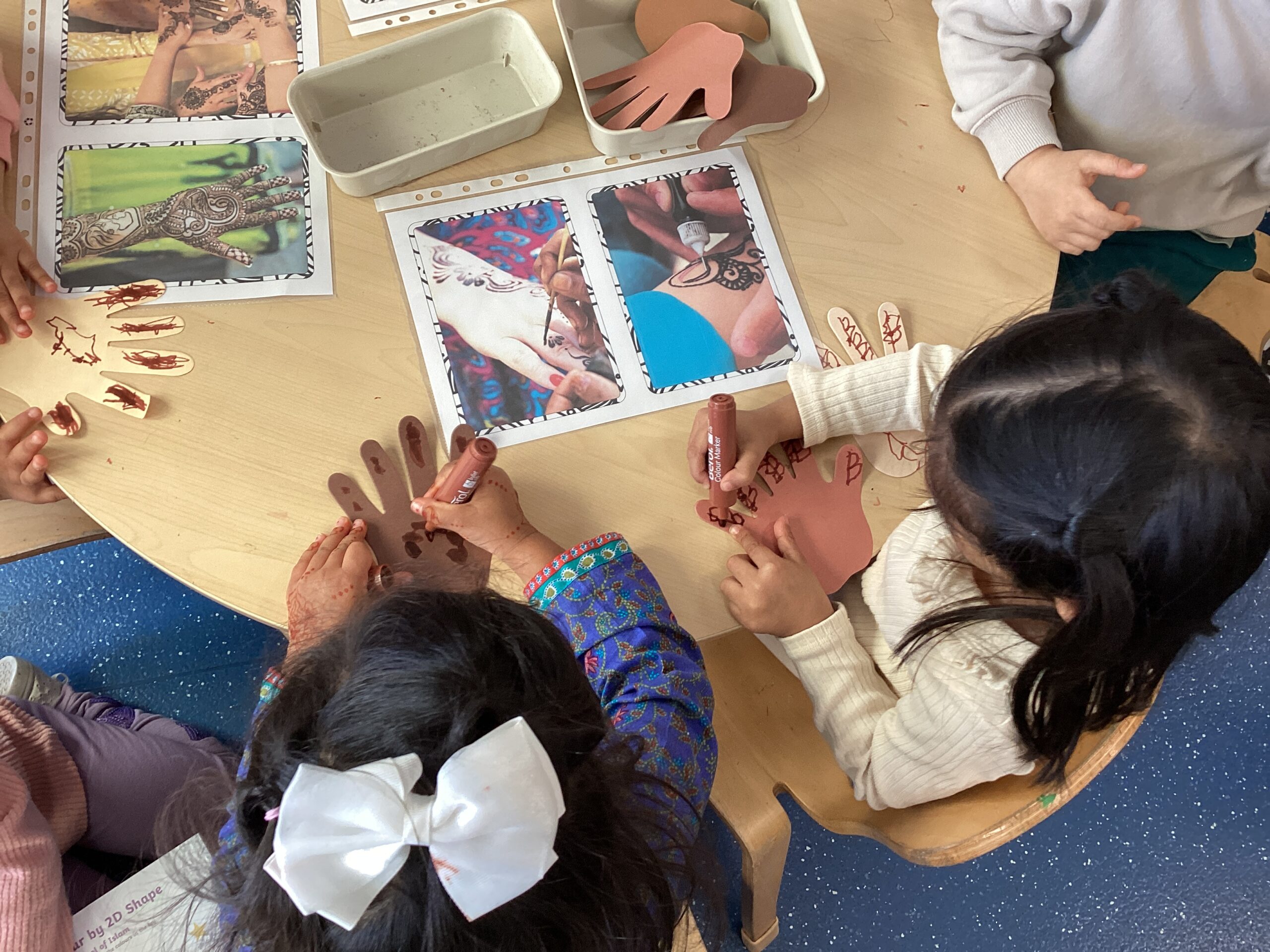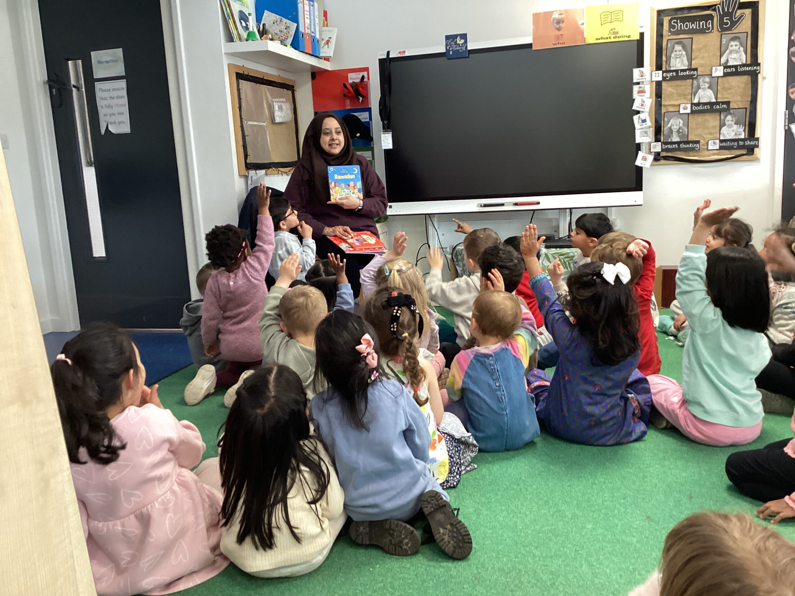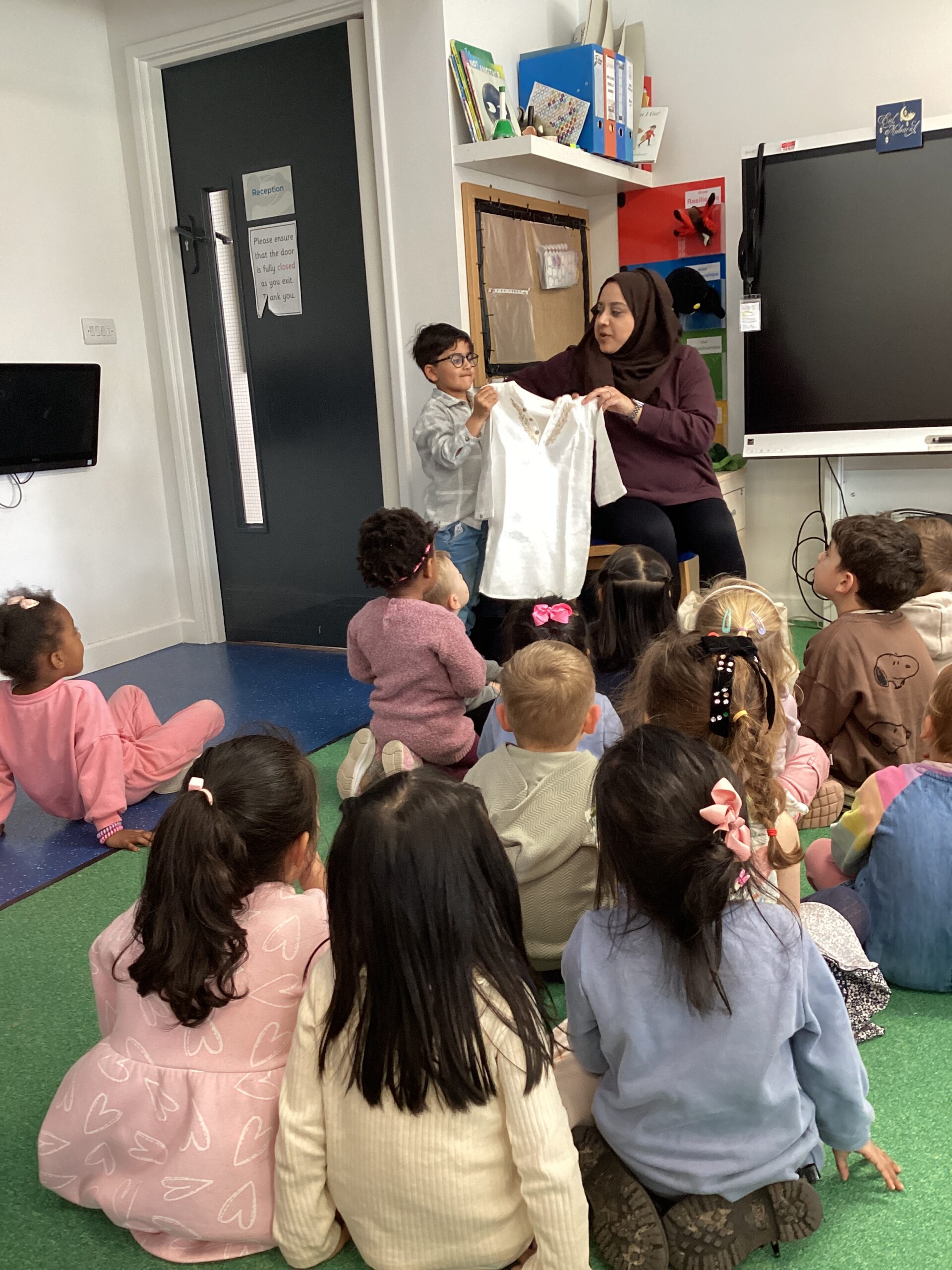We would like to say a huge thank-you to Zayan’s mummy, who joined us on Thursday afternoon for a special Eid celebration. She very kindly brought some fantastic Eid-themed stories to share, and with the help of Zayan, she helped us to learn more about the festival of Eid as we listened and shared our own experiences. We had lots of fun dancing together to celebrate and had a go at making our own Eid cards and mendhi designs. We finished our session with a special snack together, which Zayan and his mummy had kindly brought in to share. What a super afternoon!