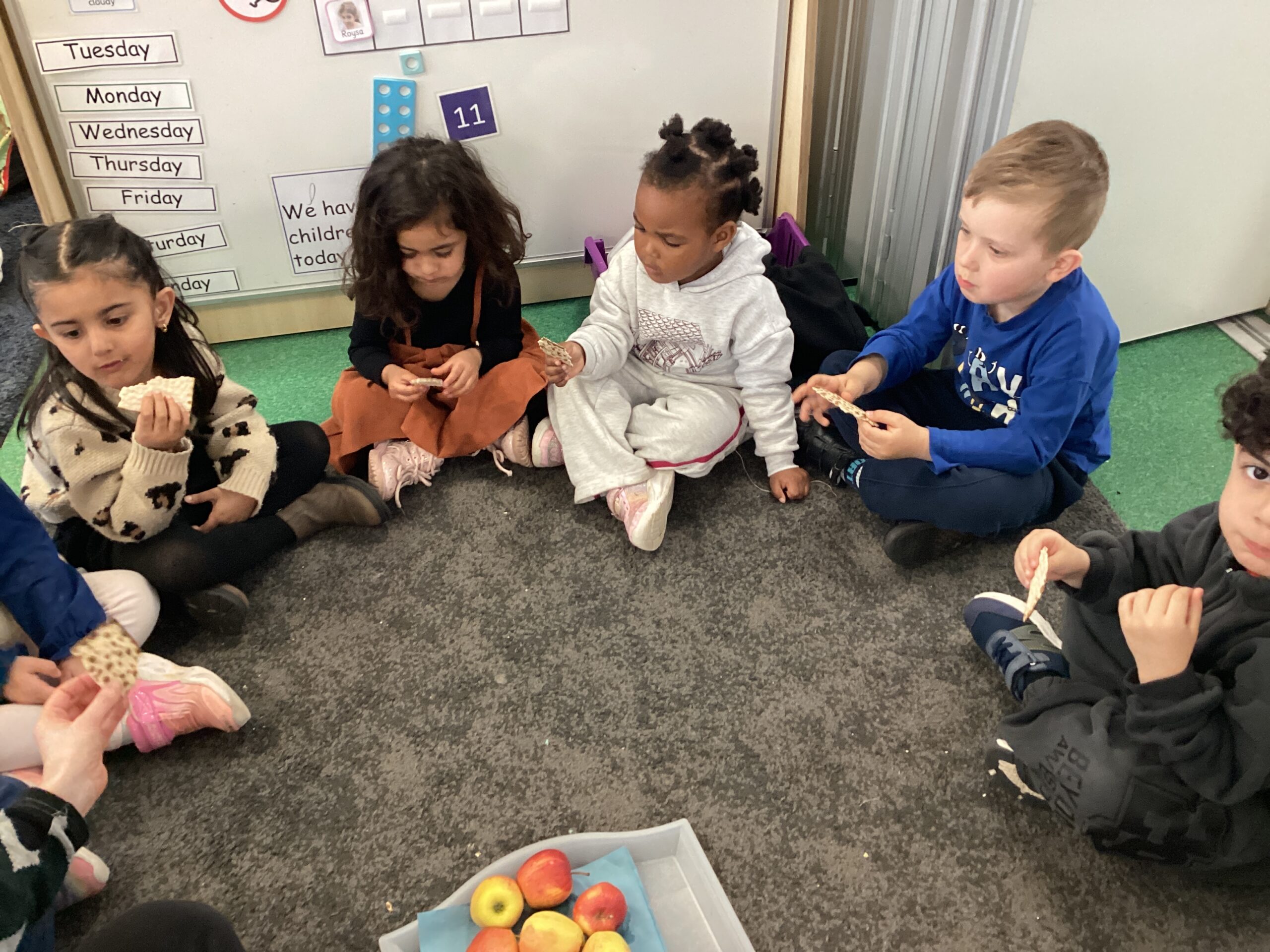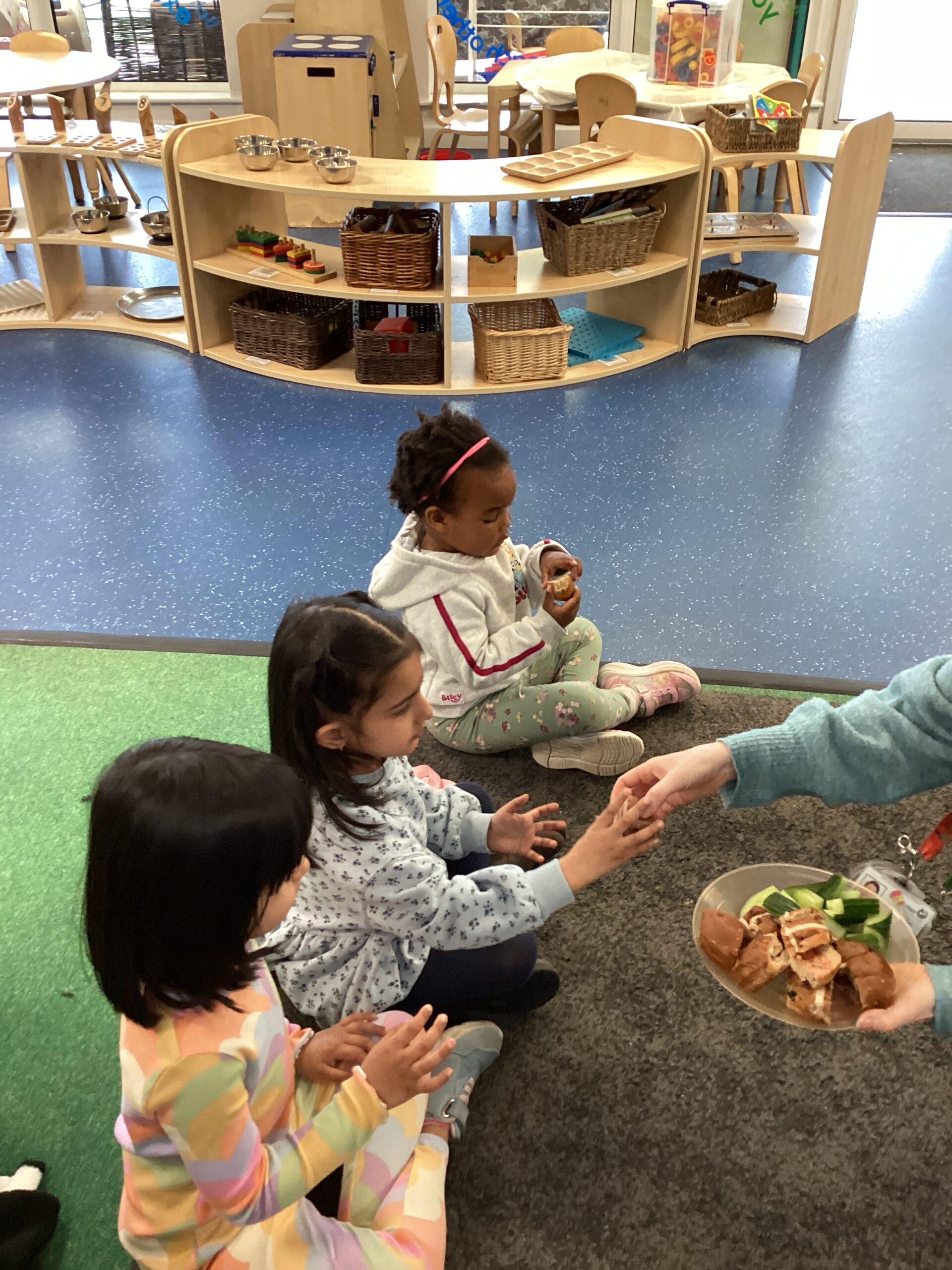This week, we also learnt about the festival, Pesach. Thank-you to Luca and his mummy who brought in some delicious matzah and grape juice for us to try. Miss Archibald came down to Nursery to lead a fantastic group time all about, Pesach, where we learnt about Moses and the story of Pesach and all about what a sedah plate is and what it represents for many people. We learnt to speak some hebrew, joined in with some special Pesach songs and played a game where we had to find hidden matzah. Thank-you to Luca and his family and Miss Archibald for giving us such a fantastic learning experience!