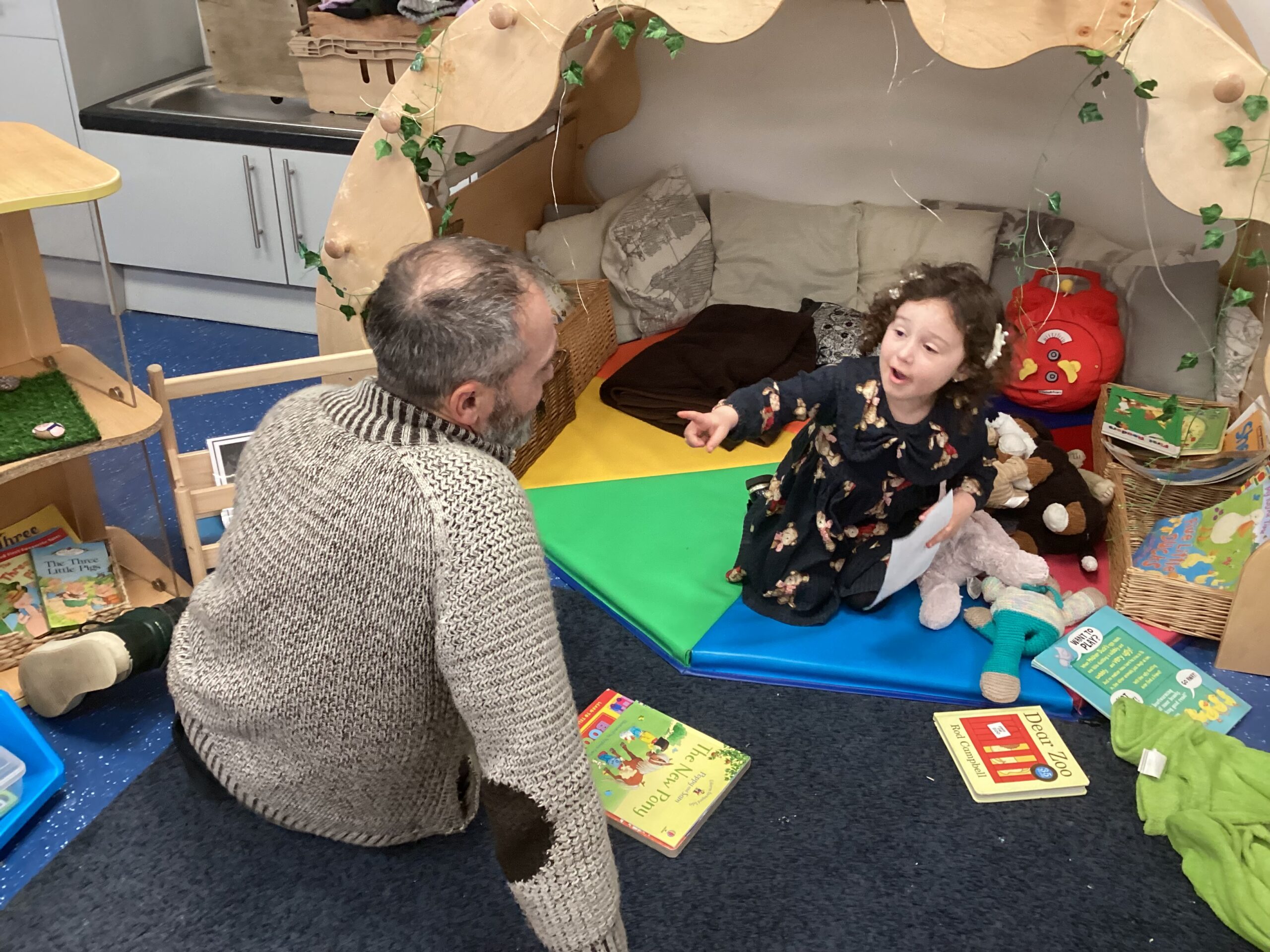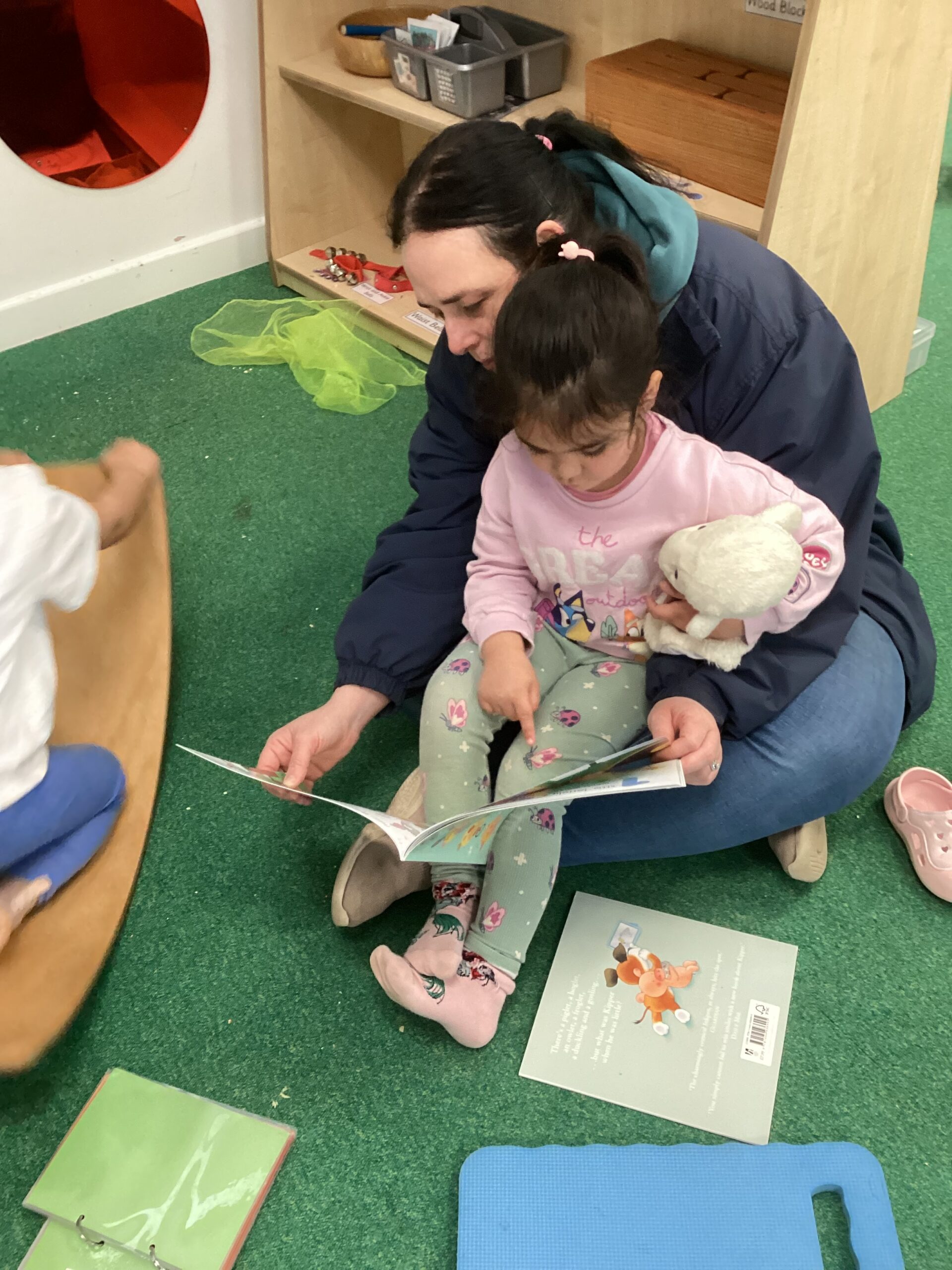 We enjoyed getting cosy in the exciting spaces within our library and continued to share lots of exciting and wonderful stories that sparked our interest! We all remained focused, listening carefully to our grown-ups as they shared the stories with us.