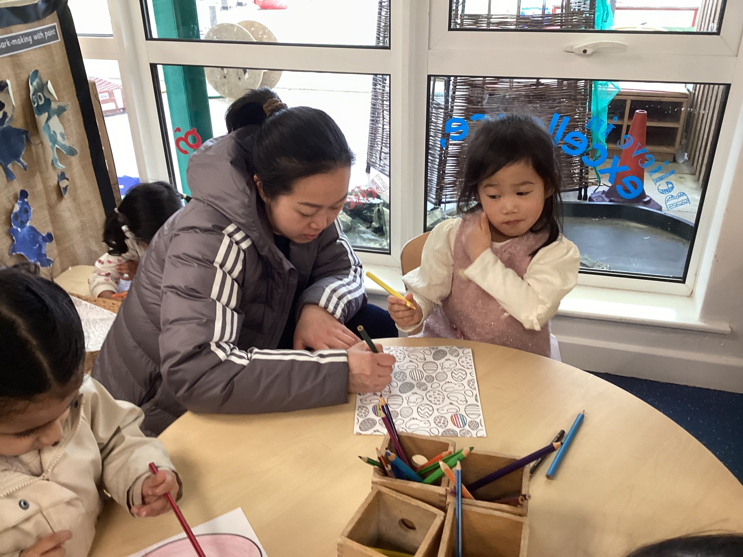 On Wednesday, we invited our families into Nursery for our Easter stay and play. We all had a fantastic time creating Easter cards, designing Easter eggs, cuddling chicks, sharing Easter-themed stories and having a go at some Easter activities! Thank you to our families who were able to join us for the event.
