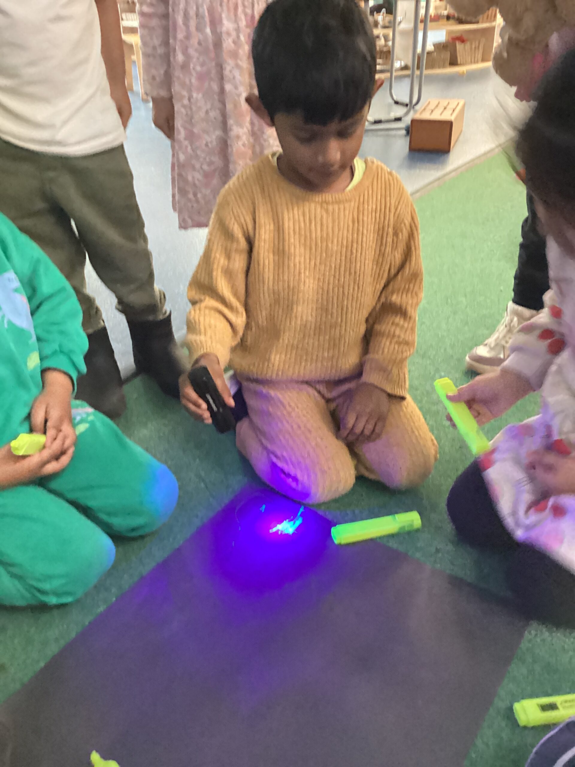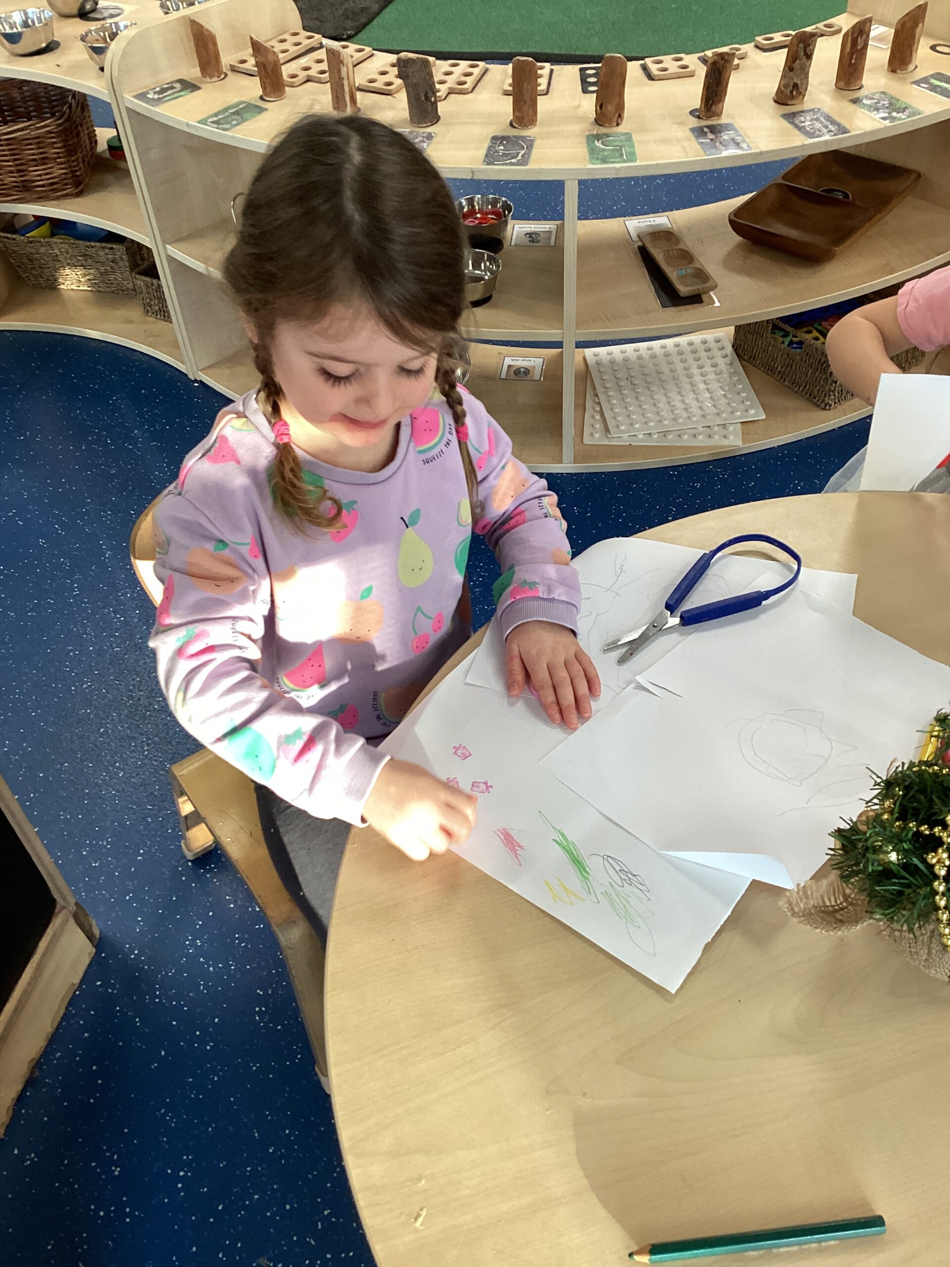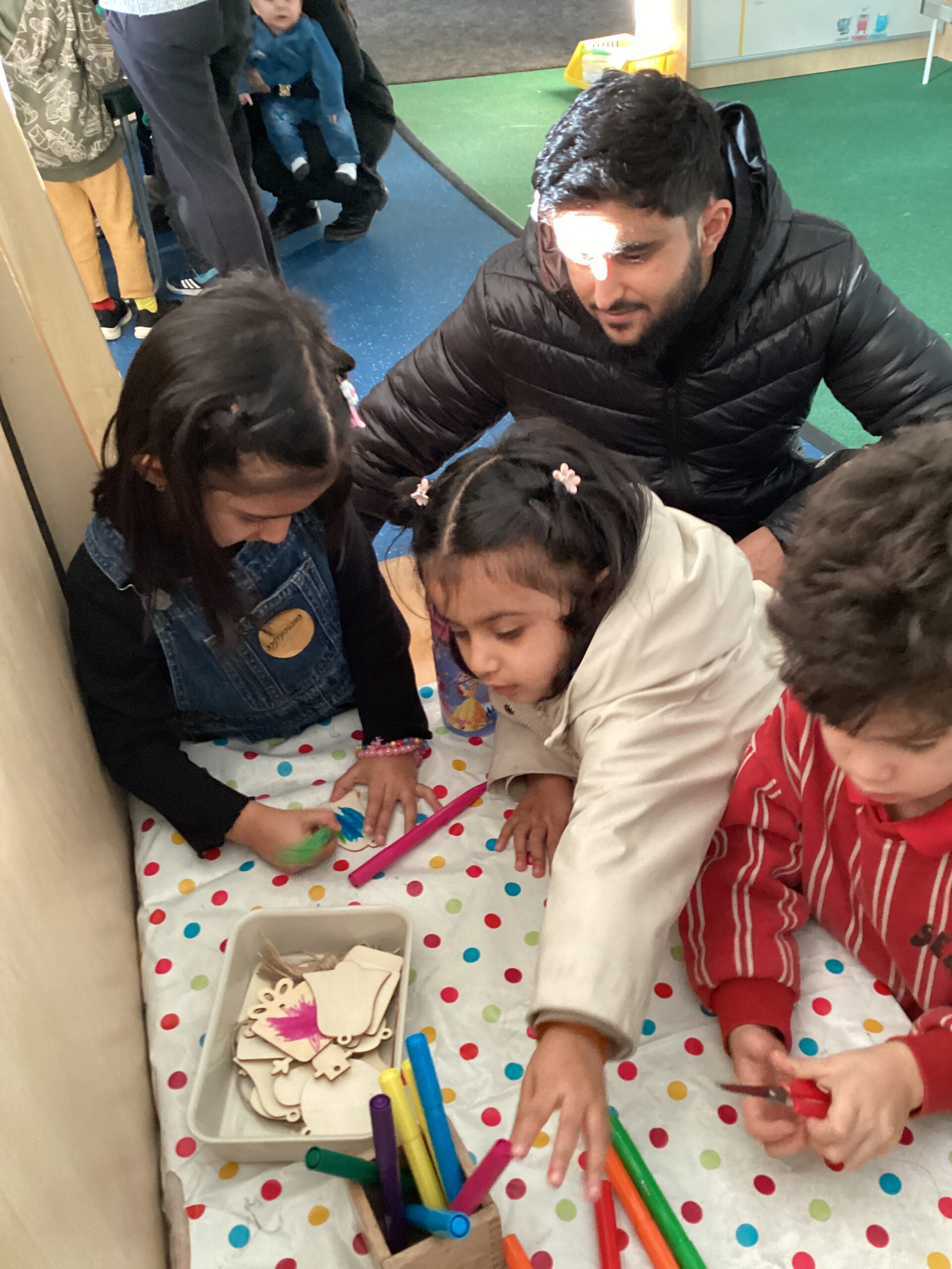 Many of us enjoyed using pens and our mark-making skills to decorate wooden tree decorations. We were very impressed with the careful control and detail added as the children brought their ideas to life. Some of us made more than one decoration to take home as gifts for our family!