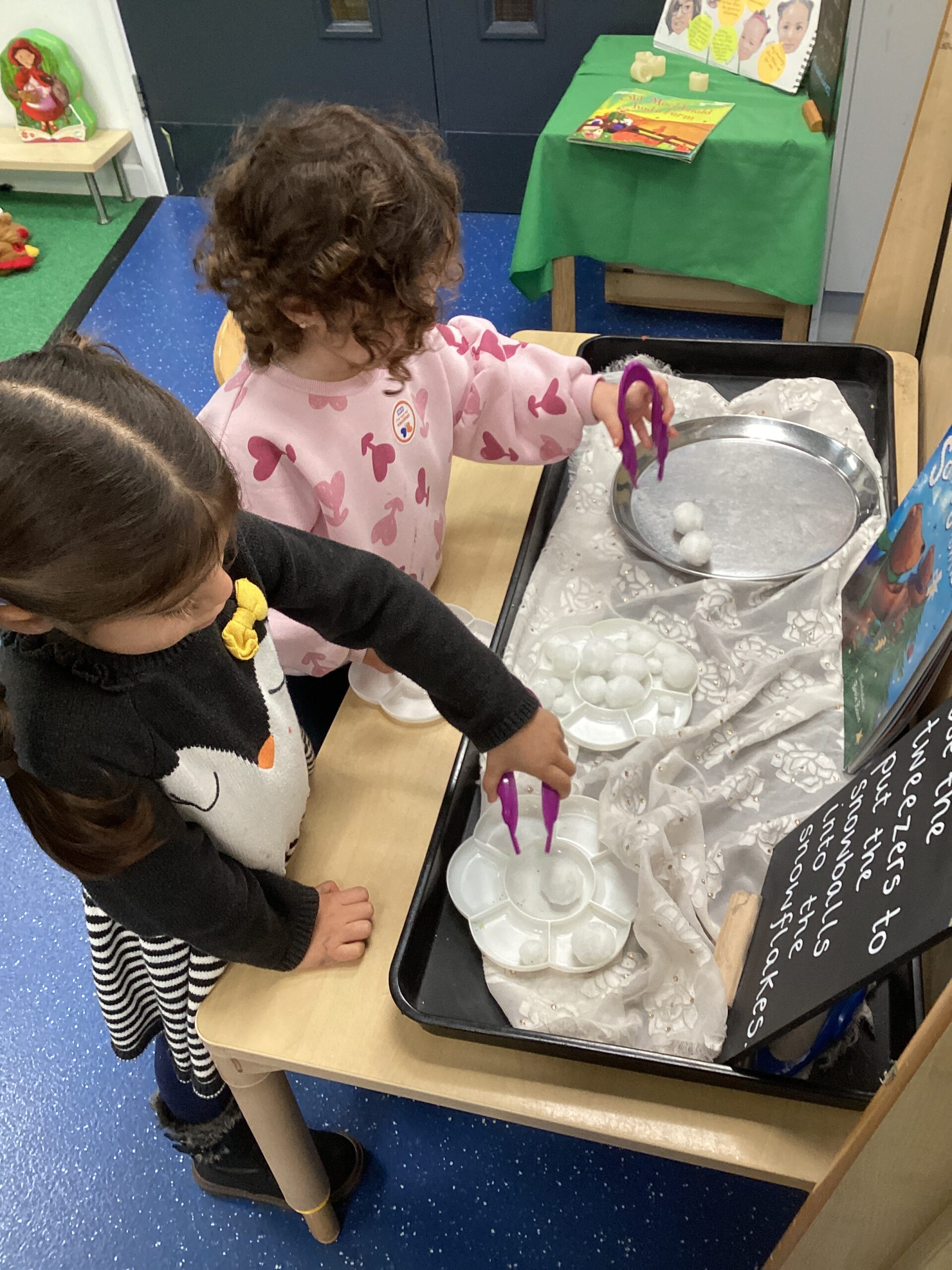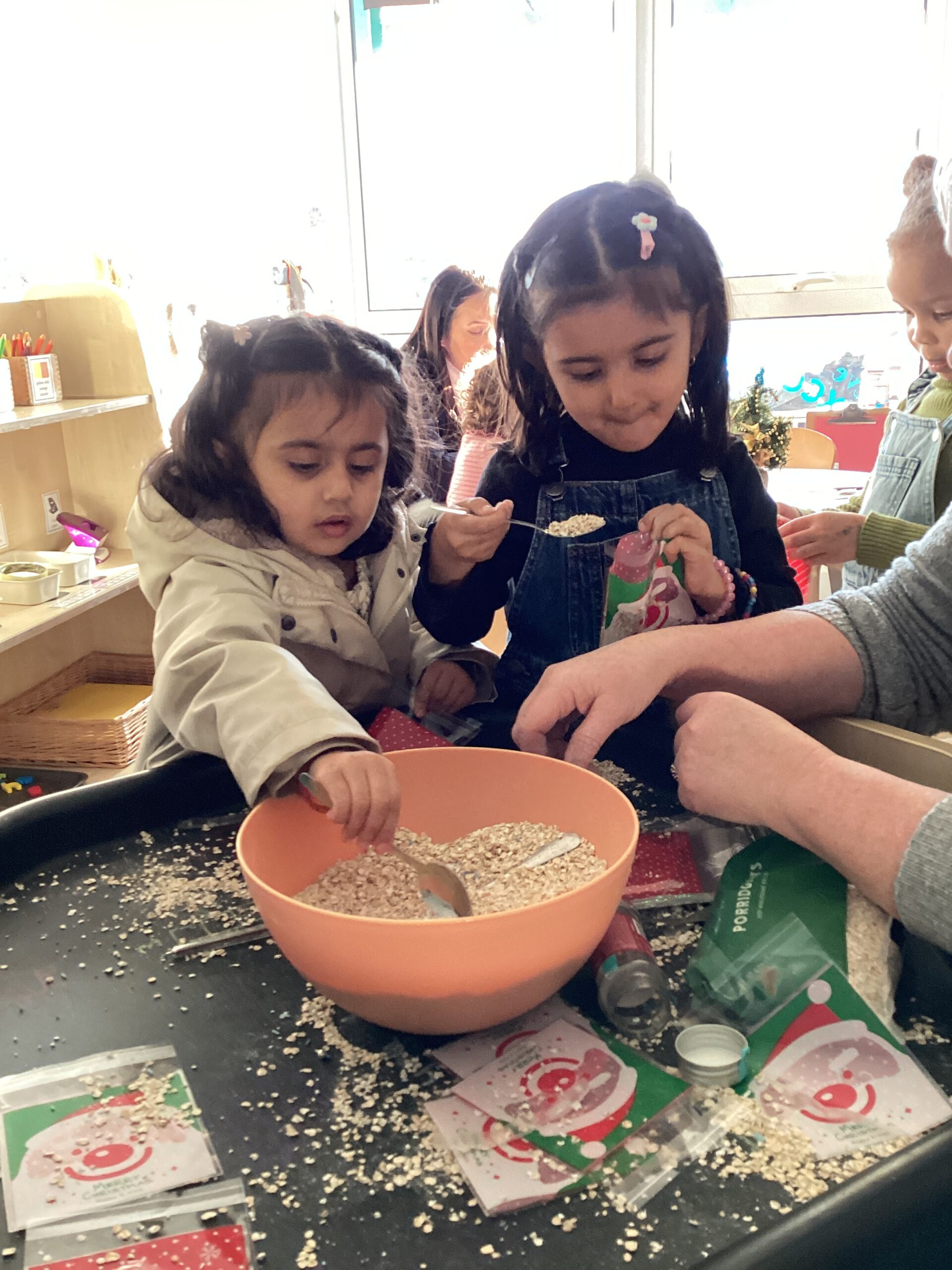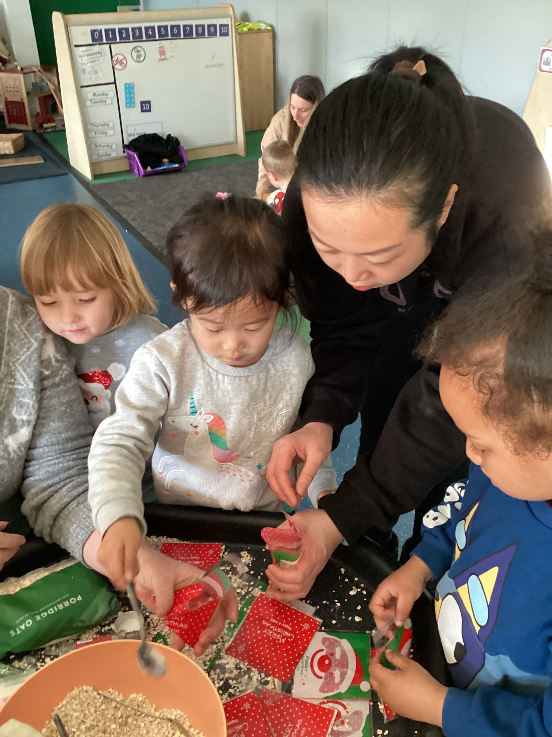 We were all keen to have a go at making a bag of reindeer food during our stay and play! We carefully scooped the mixture and poured it into our plastic bags. The reindeer food can be sprinkled outside on Christmas Eve evening for any reindeer that might be passing by. The reindeer food mix is environmentally friendly and safe for wildlife. We would love to see some photographs on Tapestry of our children sprinkling their reindeer food outside!